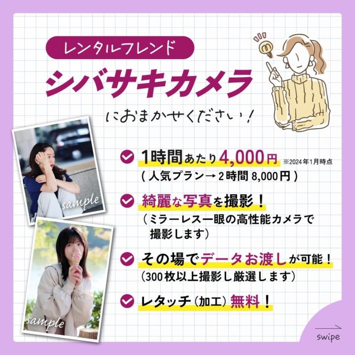 シバサキカメラこと当店キャスト柴崎凌兵を軸とし、もう1名プロカメラマンとして実績のある江川も対応可能です。