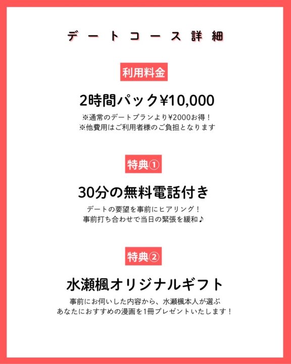 水瀬が考えるデートコースをお得に楽しめるプランの登場です☆
