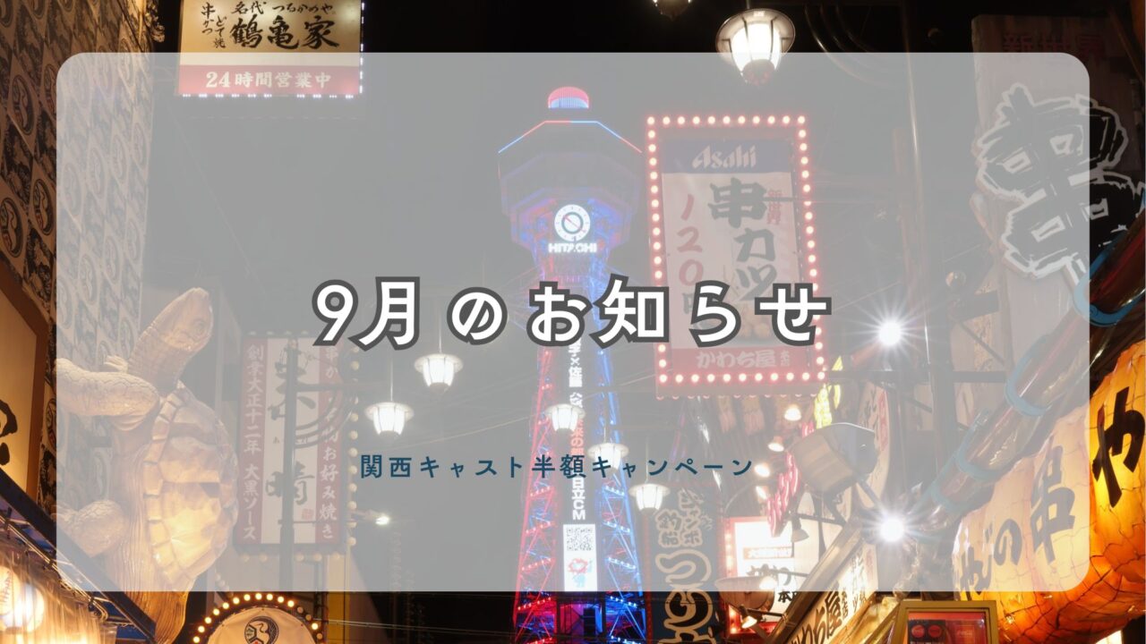 【関西キャスト半額】9月のキャンペーンのお知らせ