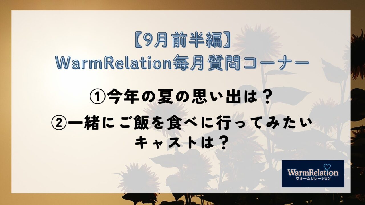 涼しくなり、過ごしやすくなる秋の夜長を、WarmRelationのキャストと共に、特別な時間でお過ごしください。