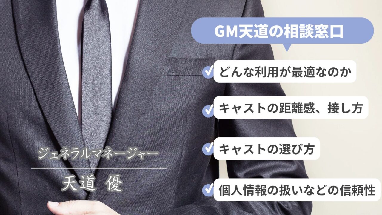 しっかりとした社会経験を持つGMが、万が一のリスクやお客様のご利用をサポート致します。