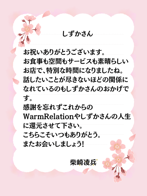 感謝を忘れずこれからのWarmRelationやしずかさんの人生に還元していきます。