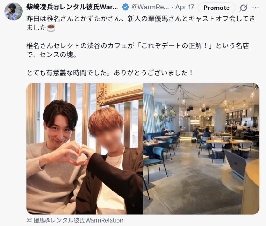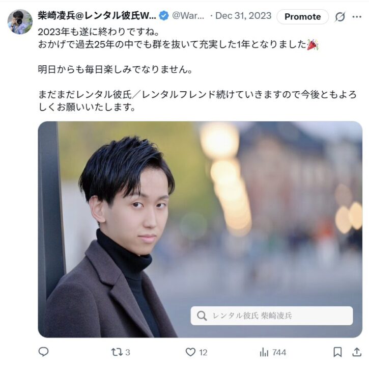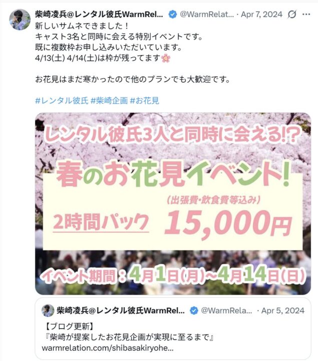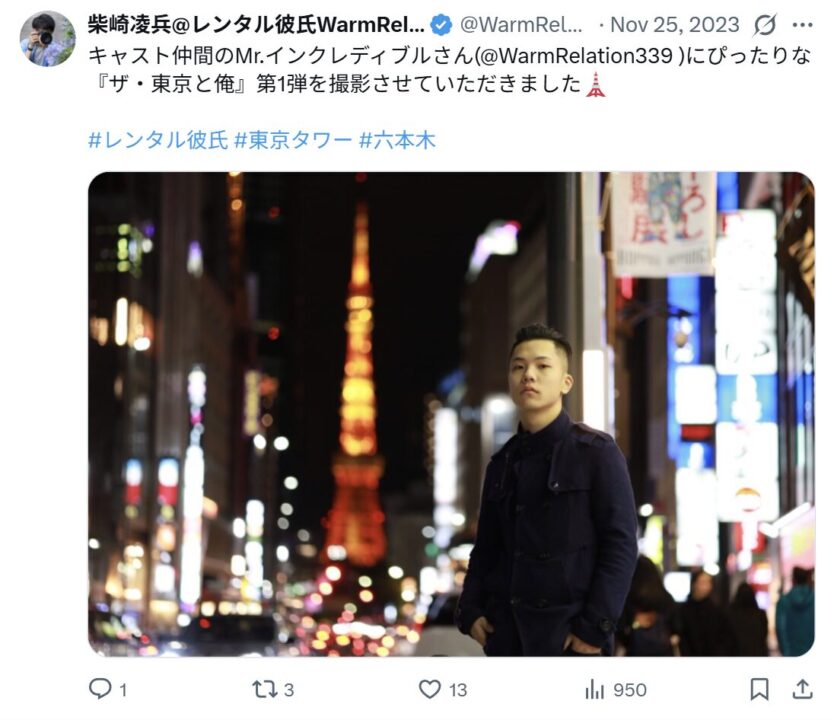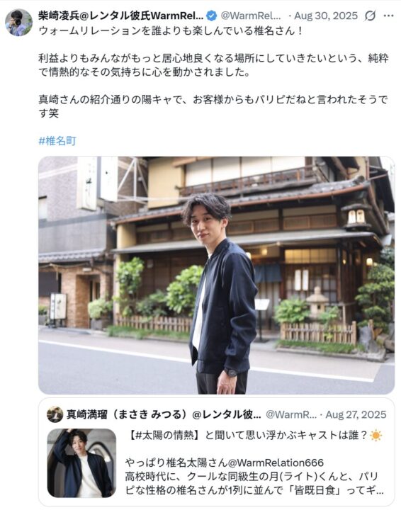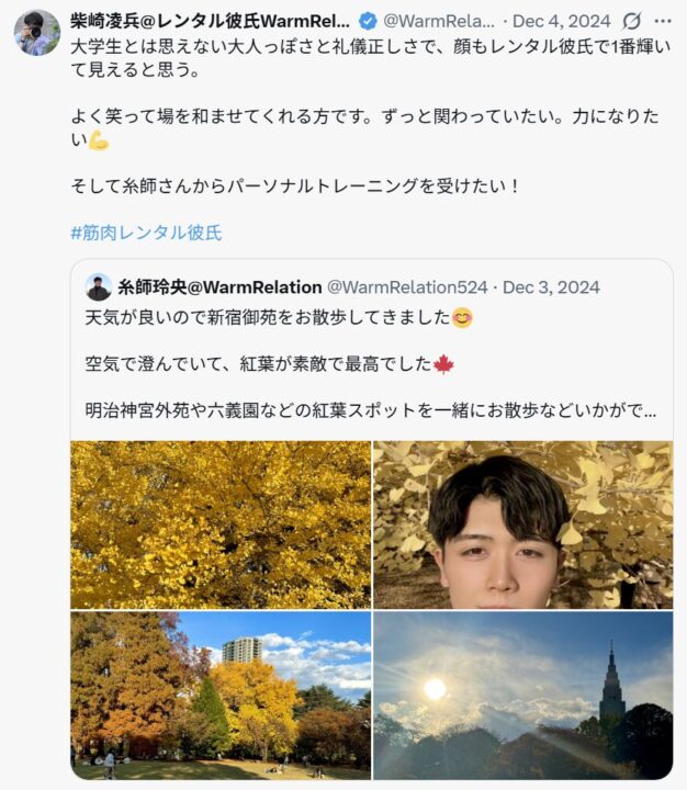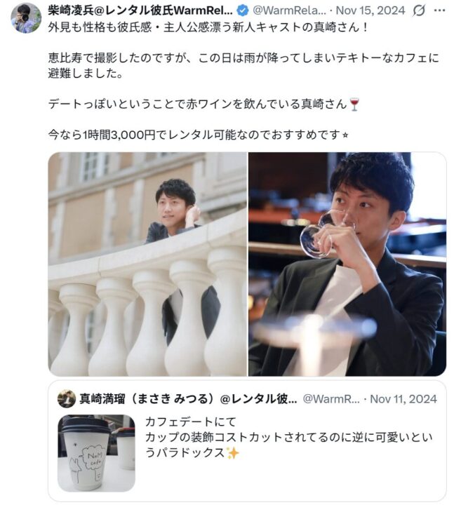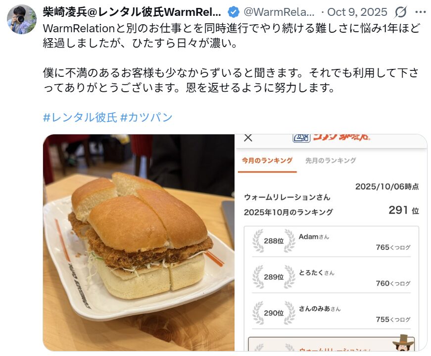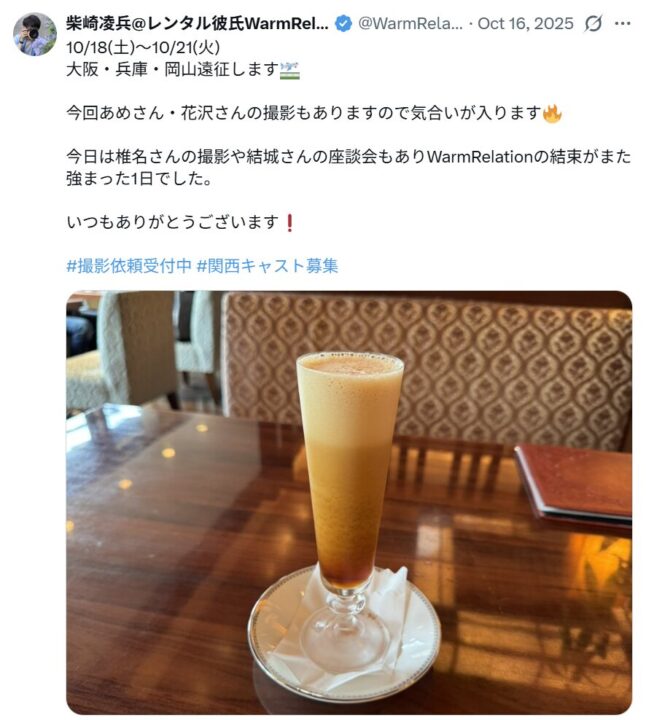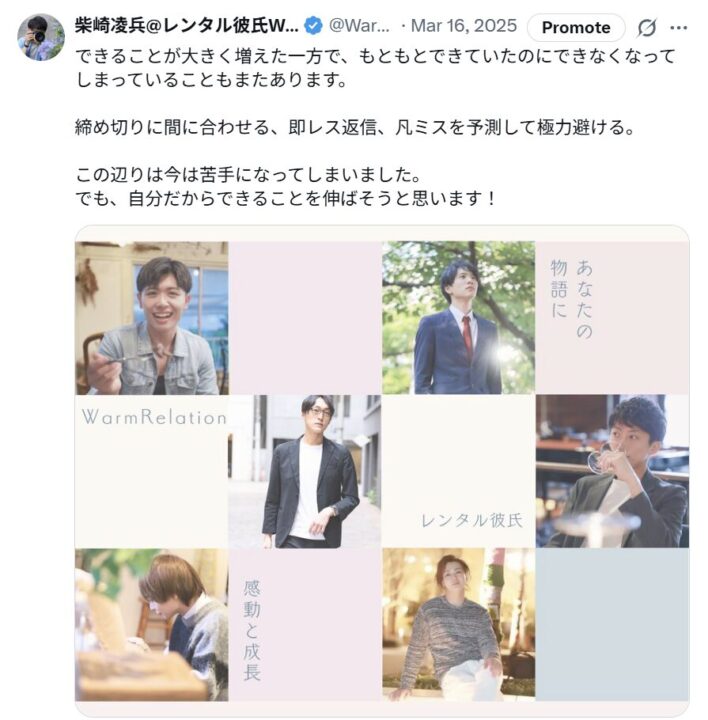 — 柴崎凌兵@レンタル彼氏WarmRelation代表 (@WarmRelation410) April 18, 2026