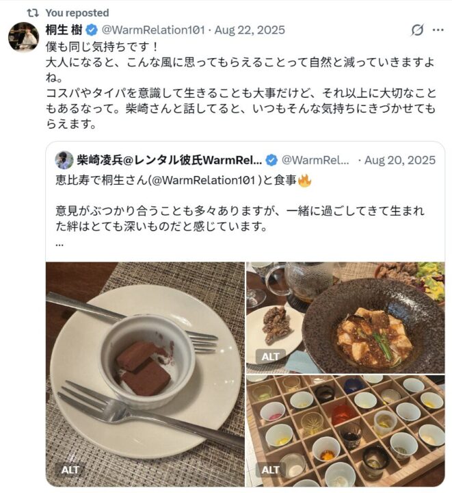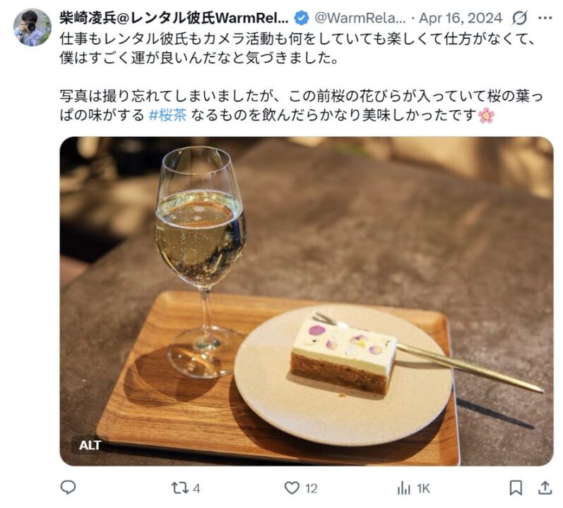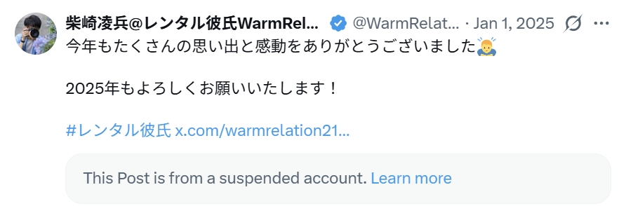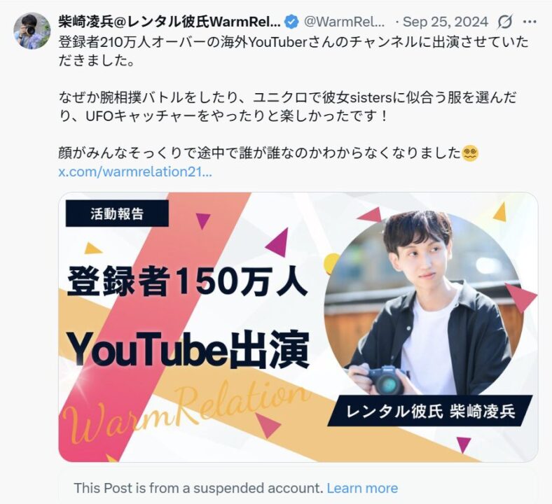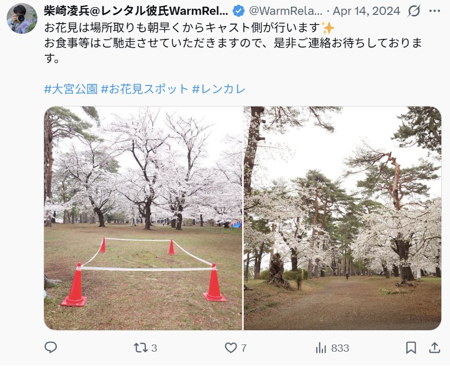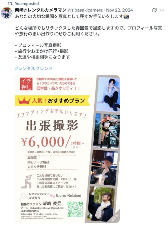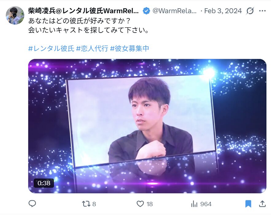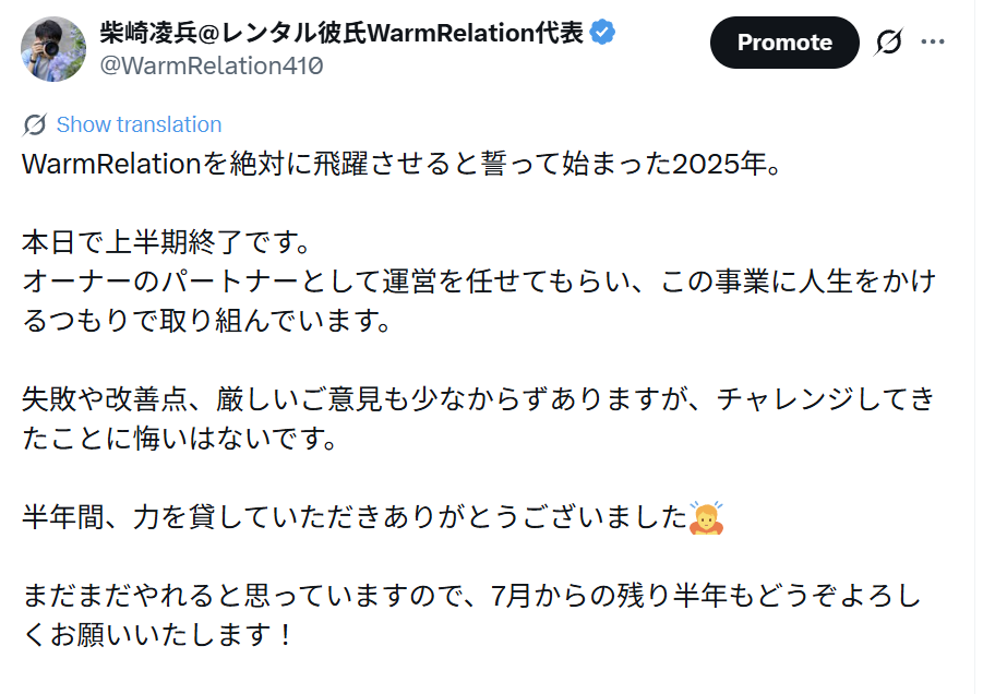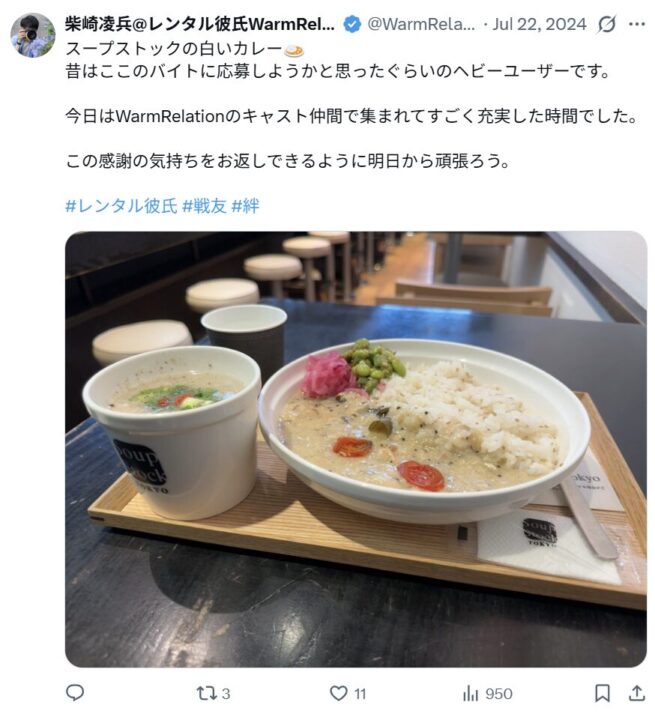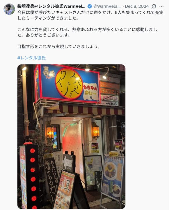 — 柴崎凌兵@レンタル彼氏WarmRelation代表 (@WarmRelation410) April 18, 2026
