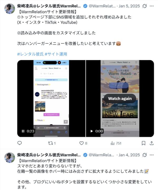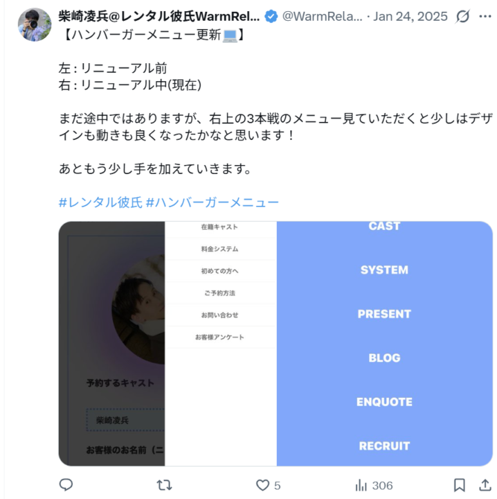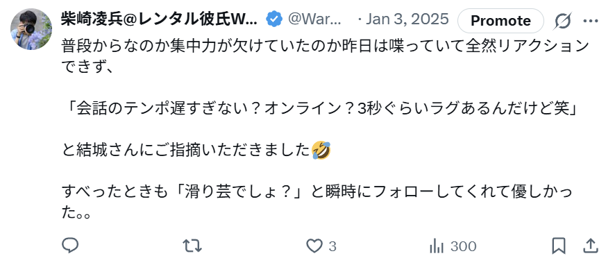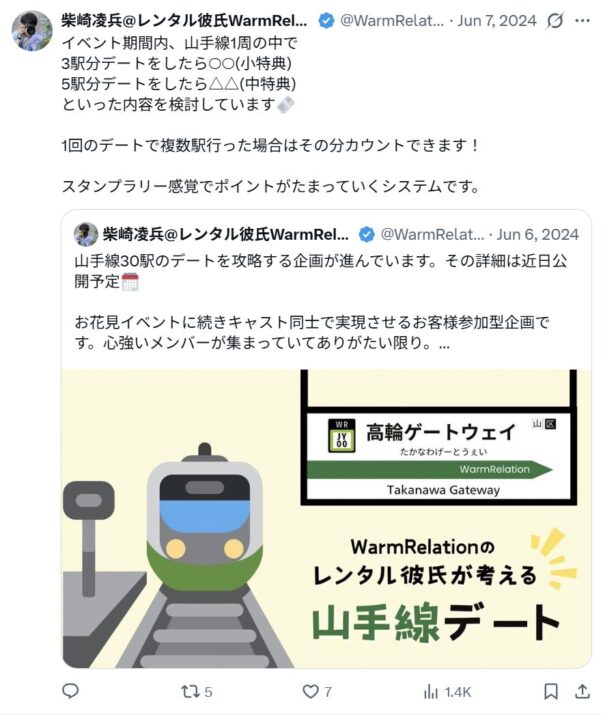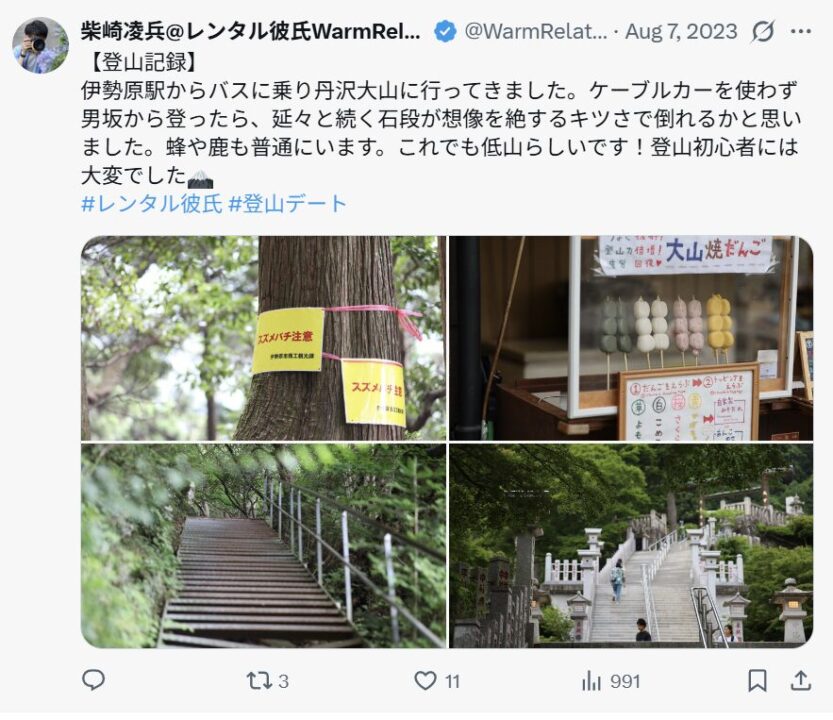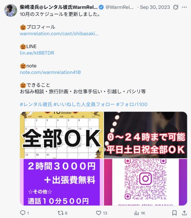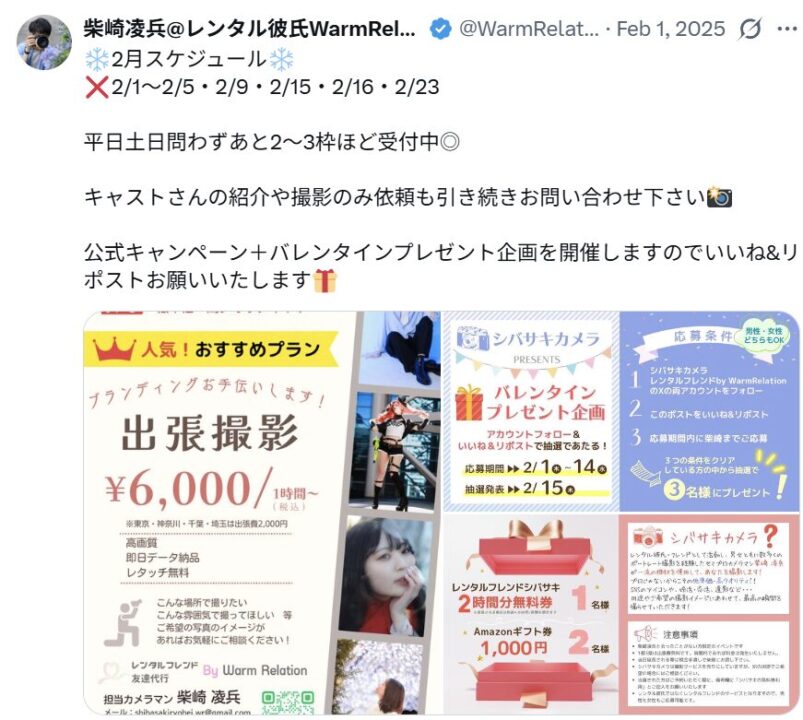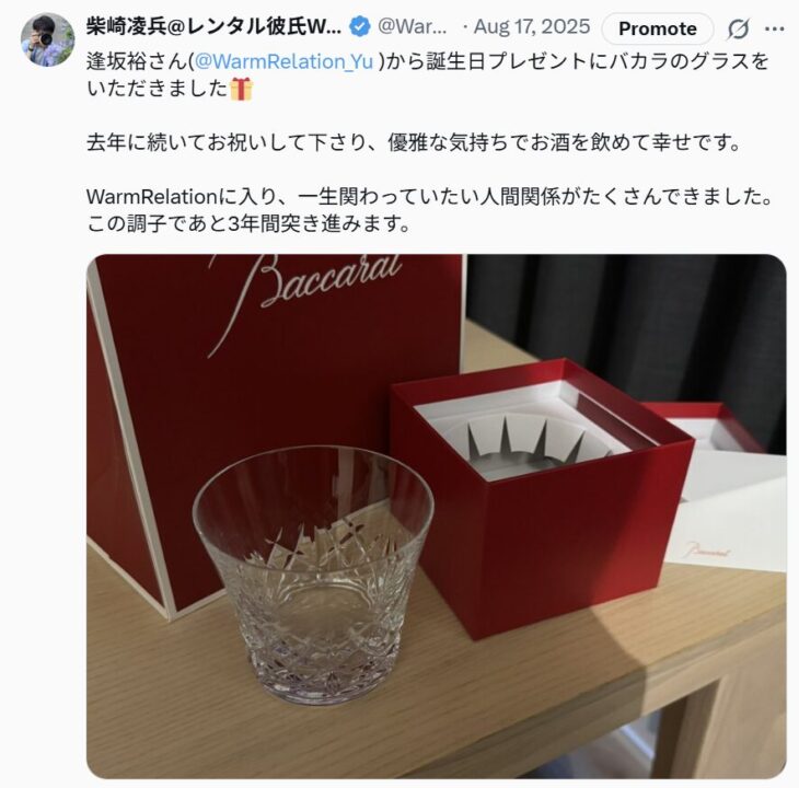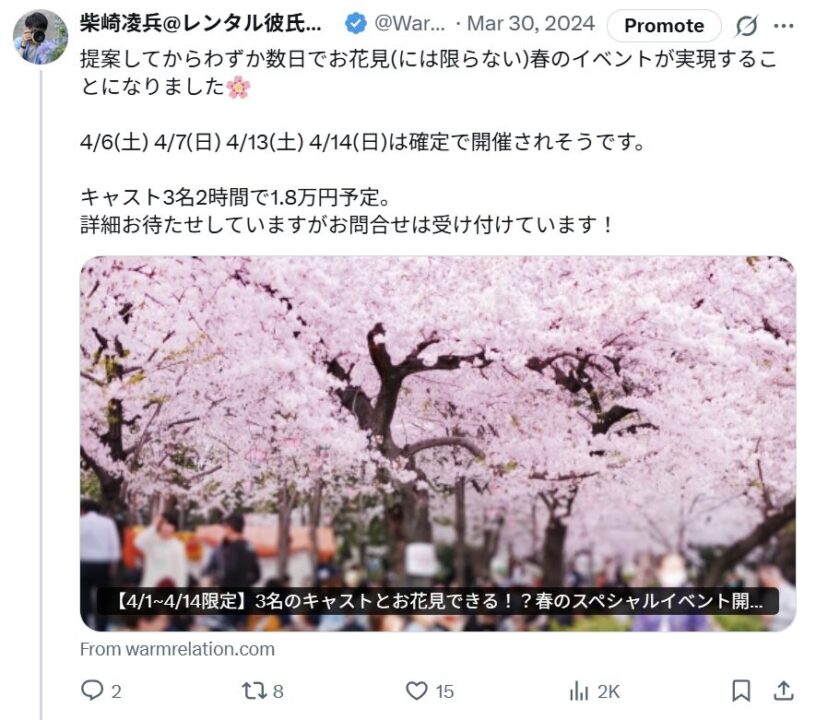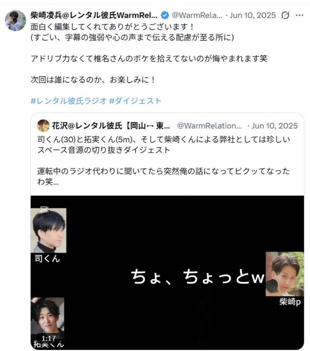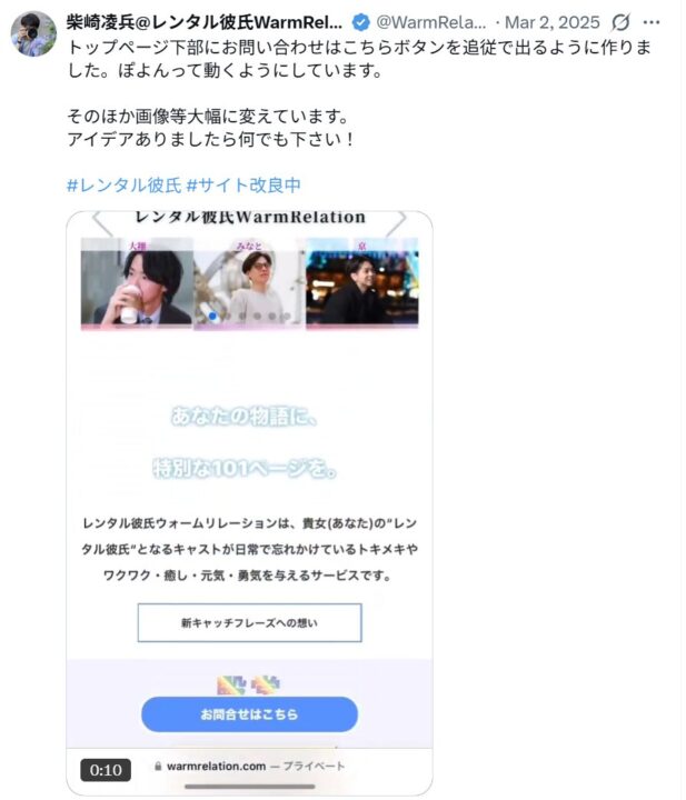 — 柴崎凌兵@レンタル彼氏WarmRelation代表 (@WarmRelation410) April 18, 2026